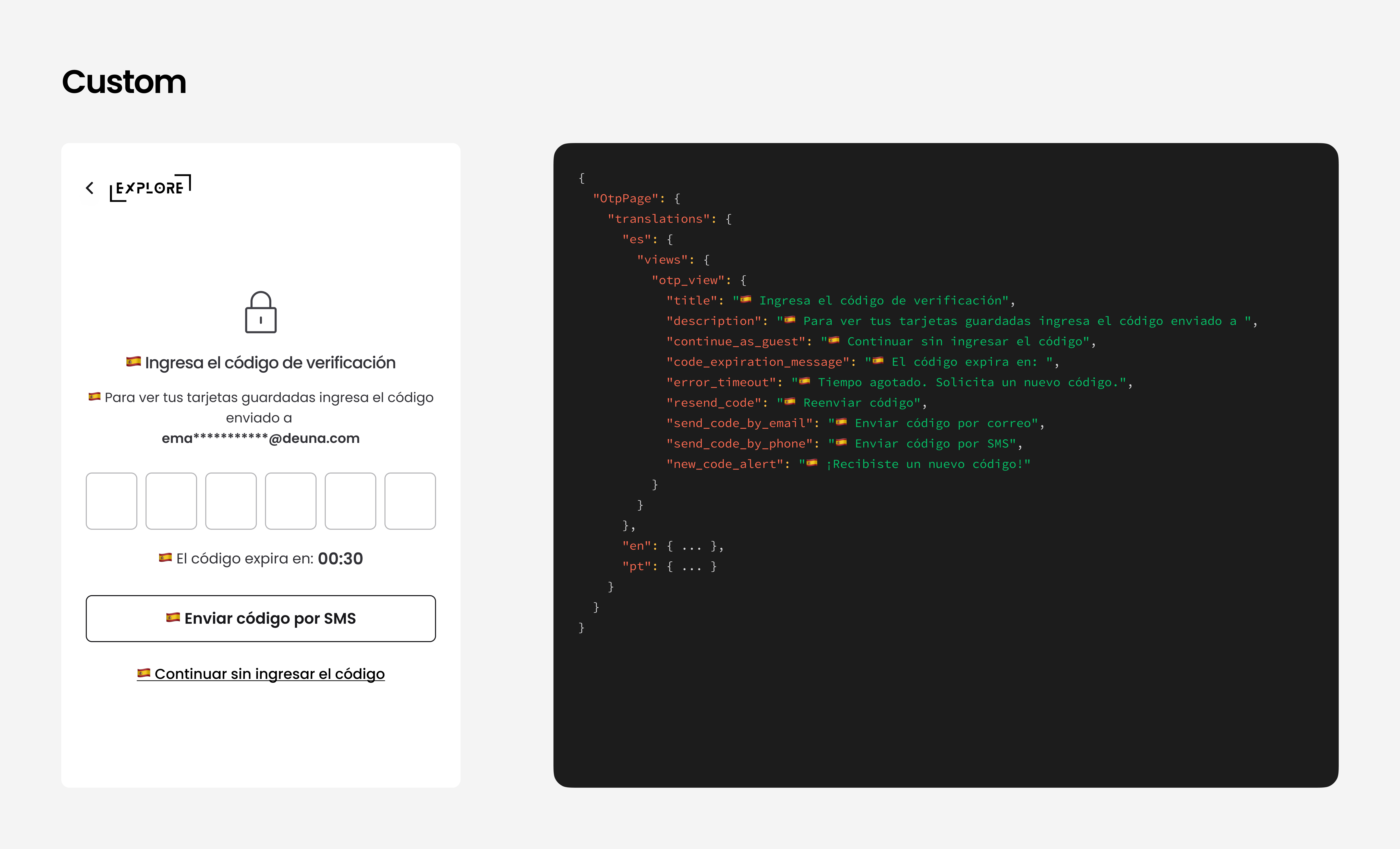 - Visual elements in specific views (such as OTP, cards, thank you page, billing data, and so on)