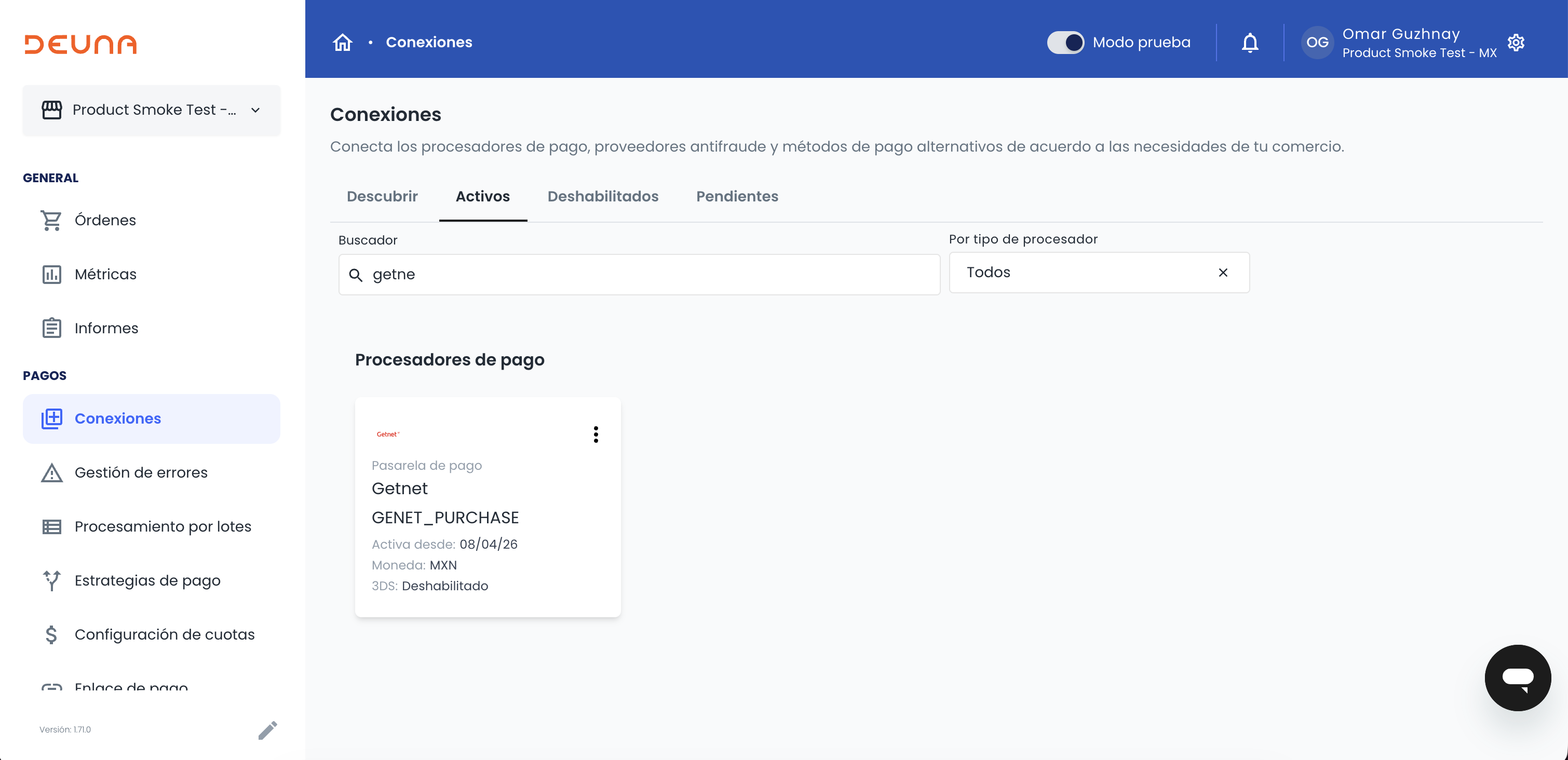Integrate Getnet SEP in DEUNA.