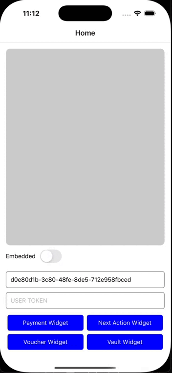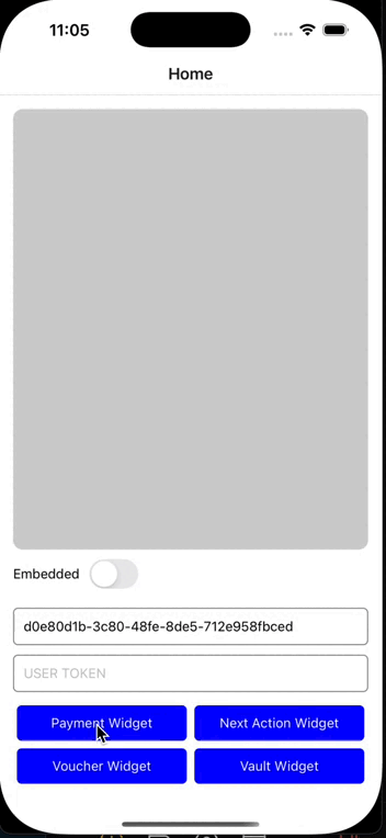 Utiliza el view DeunaWidget para mostrar el payment widget de forma embebida en tu app con SwiftUI.