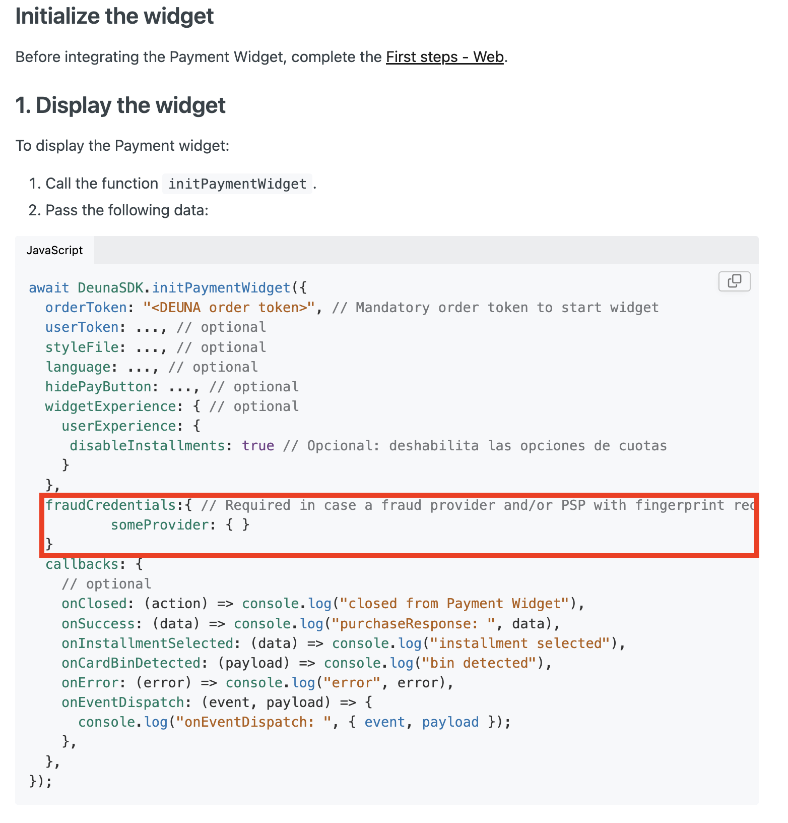Integrate DEUNA's device fingerprint for anti-fraud and payment engines in your application.