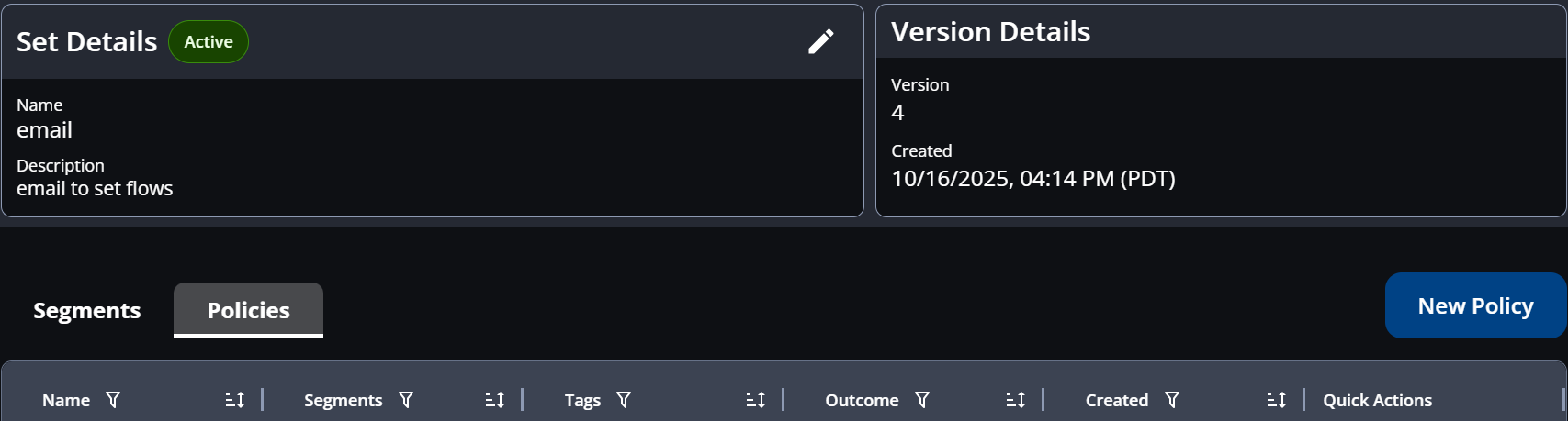 - Once saved, find the Set created and in “Set Actions” select “Activate Set”.