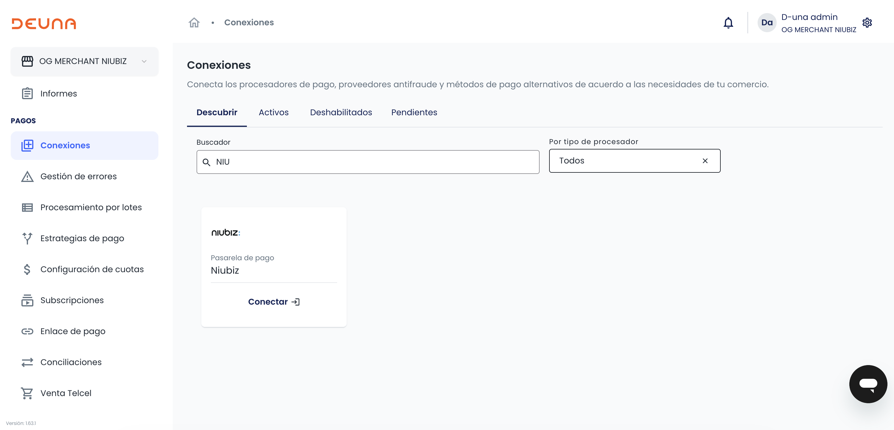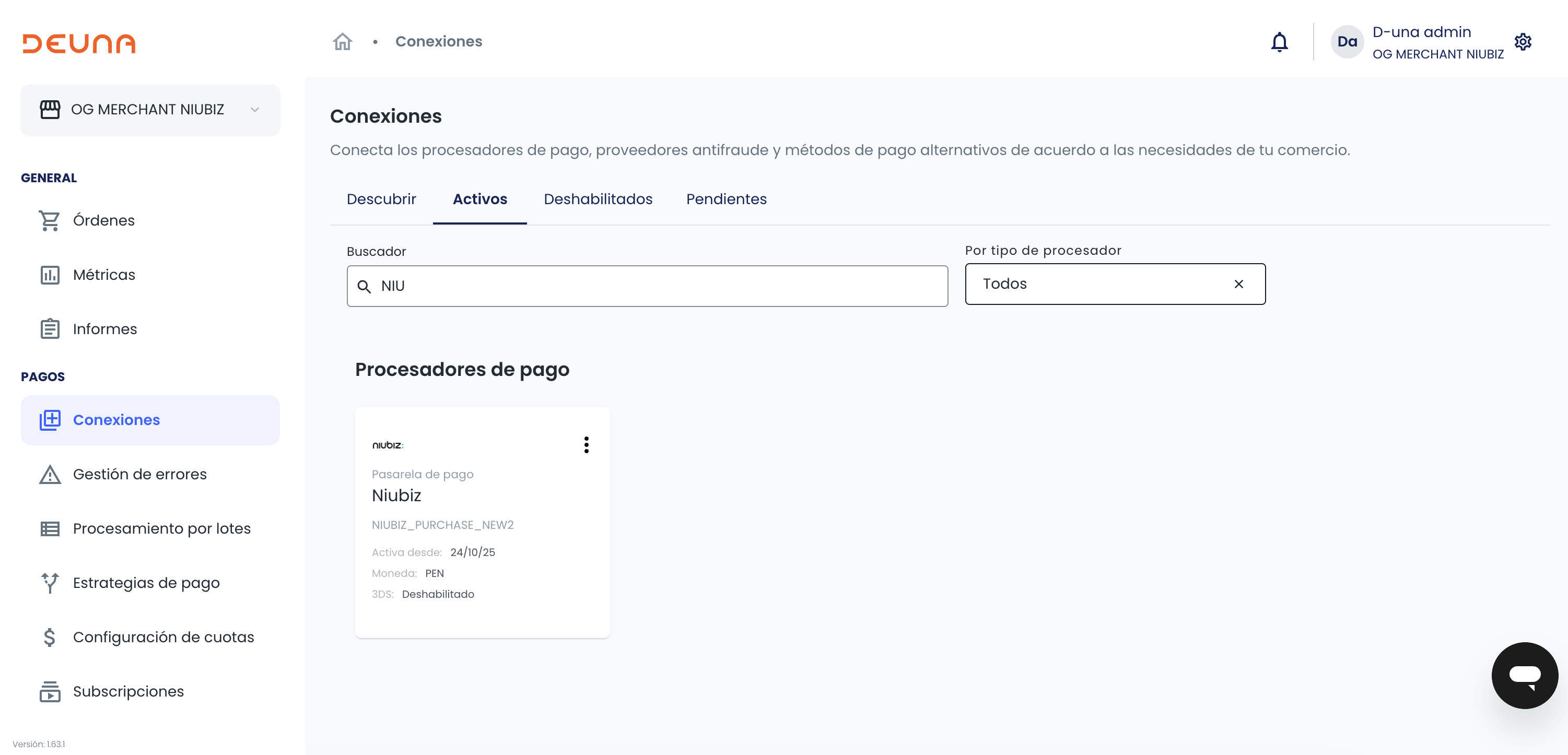 From this point on, you can now process transactions with Niubiz through DEUNA.
