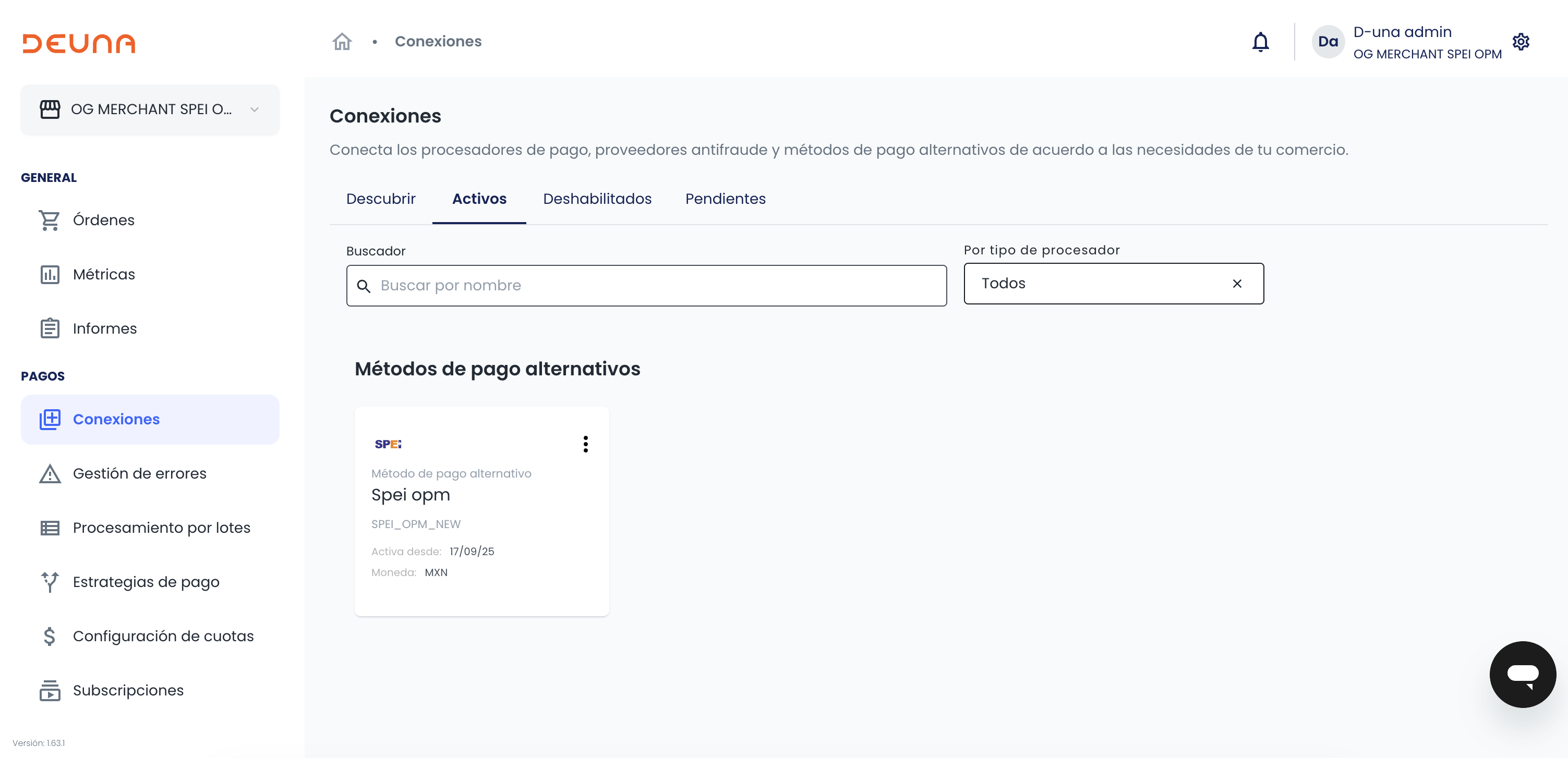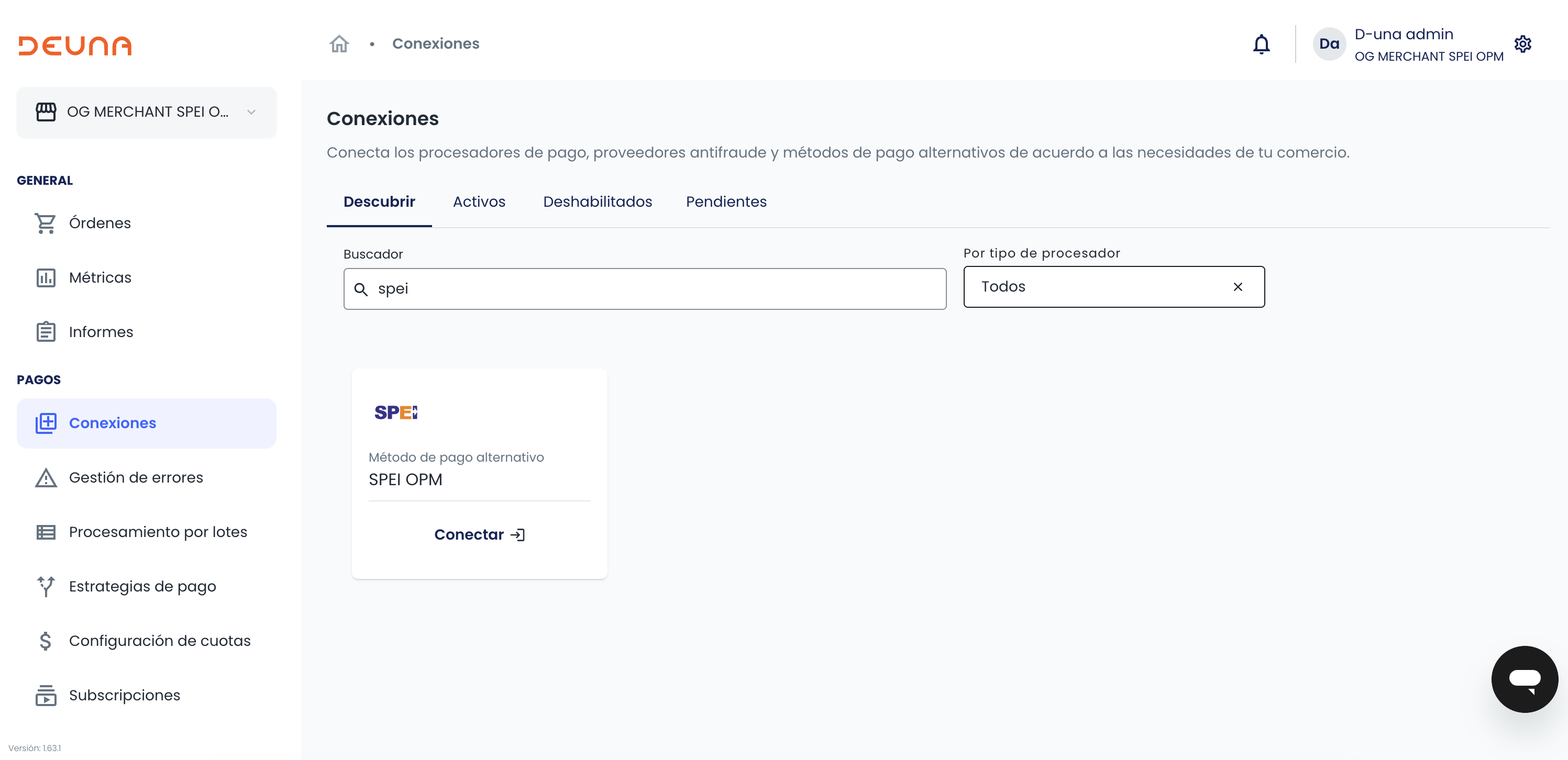 From this point on, you can now process transactions with SPEI OPM through DEUNA.