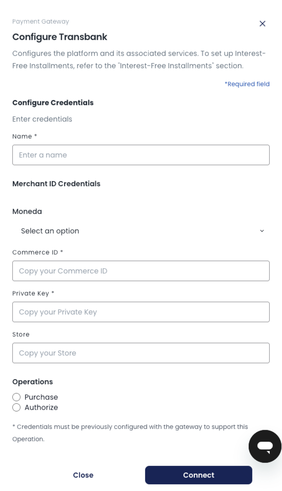Tbk-Api-Key-Id). - In Private Key enter the Transbank's API Key Secret (