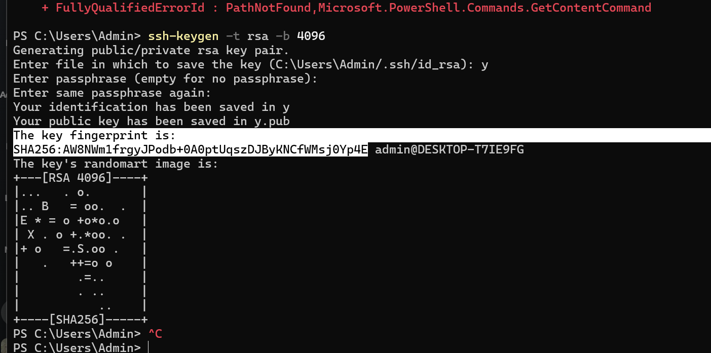 Enter passphrase for key 'C:\Users\Admin/.ssh/id_rsa’ - Press