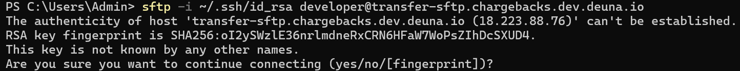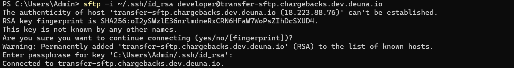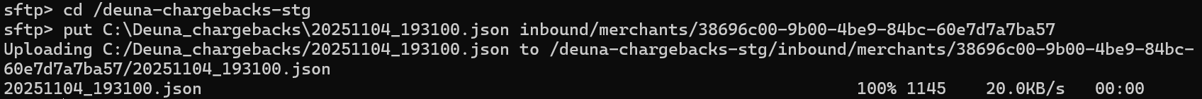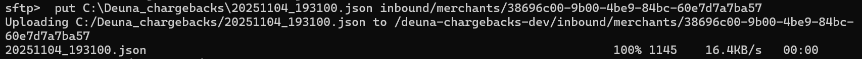 Connected to [transfer-sftp.chargebacks.dev.deuna.io](http://transfer-sftp.chargebacks.dev.deuna.io/)