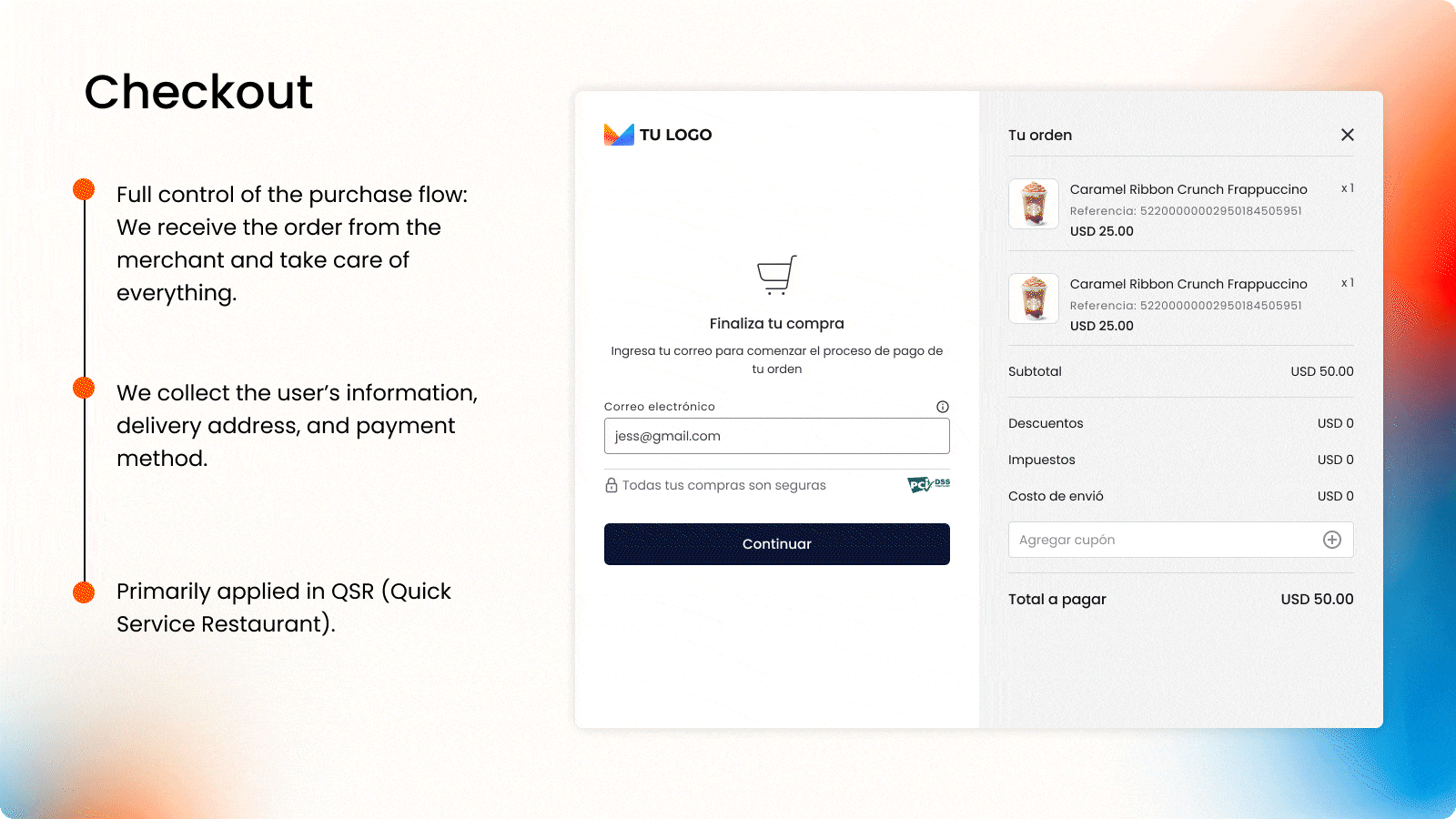 NOTE: The Checkout widget requires an order of type PAYMENT_LINK.
